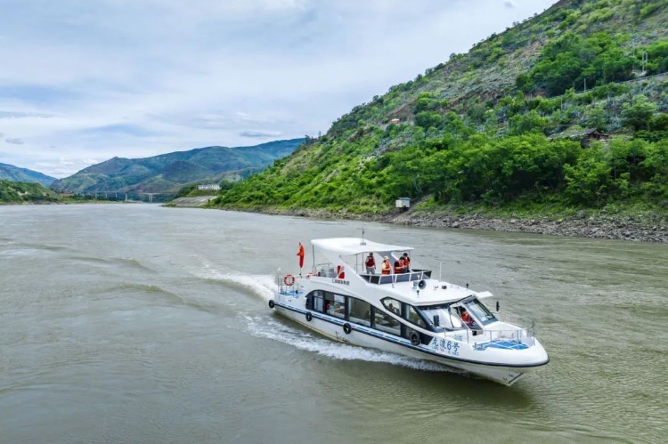 從拉鲊渡口乘艇出游,迎著濕潤的微風,馭浪而行,近距離感受藍天、江水的魅力,沉醉其中。