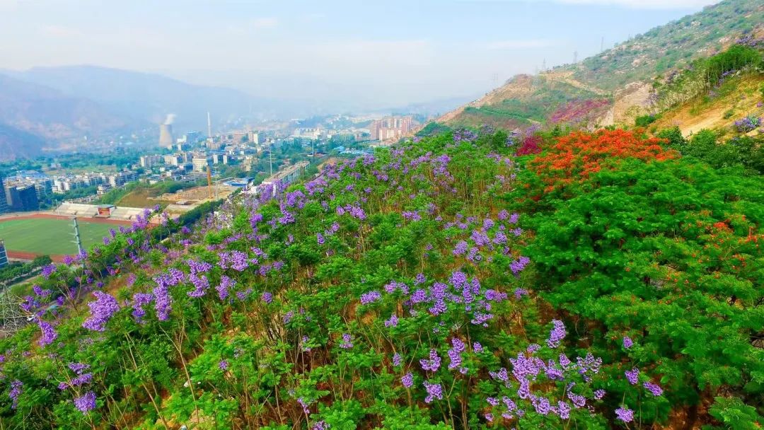 - 攝影點位:山頂觀景臺、鳳凰花與藍花楹交錯處(鳳凰花同期綻放,紅紫交織更驚艷)。