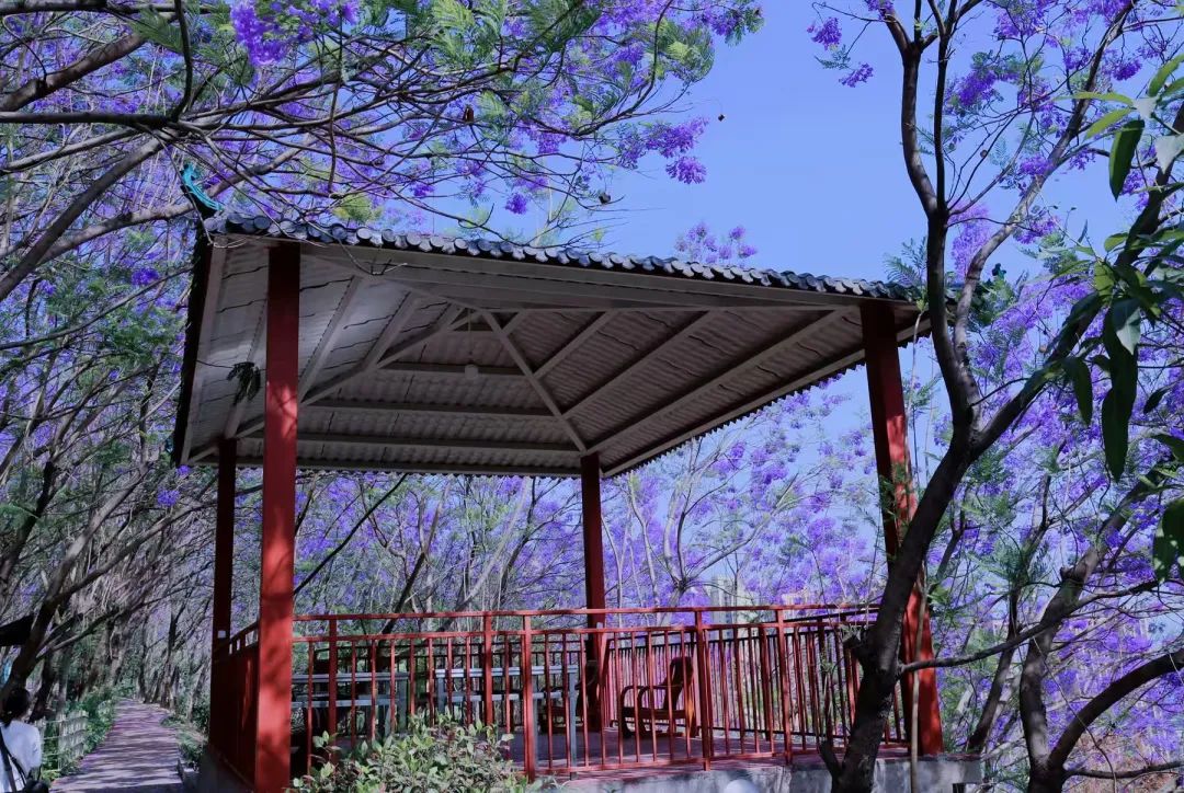 五一正值藍花楹盛放期!西佛山藍紫色花海如云似霧,鋪滿山野,宛如童話世界。推薦清晨或傍晚登頂,避開烈日,在觀景臺俯瞰西區全景,隨手一拍都是浪漫大片。