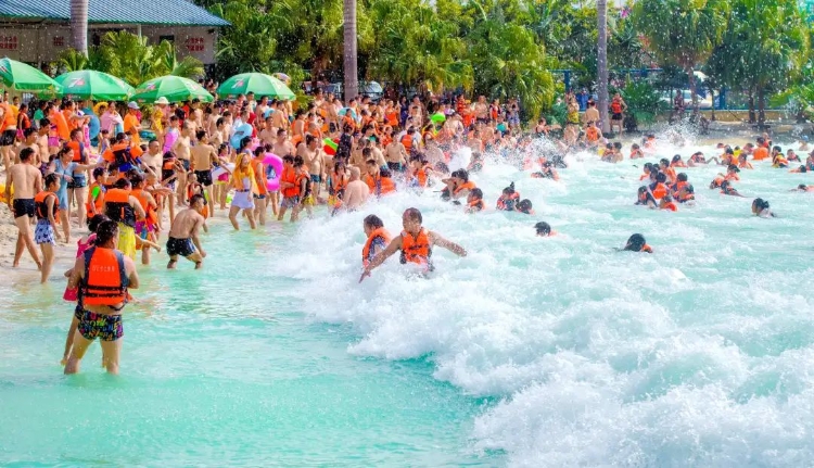 賞完花直接沖進清涼!西佛山水上世界擁有全市唯一的沖浪池,五一期間還有水上飛人表演、瘋狂海嘯等限定活動。玩累了,躺在沙灘椅上欣賞鳳凰花與碧水相映的絕美畫面,體驗冰火兩重天的樂趣。