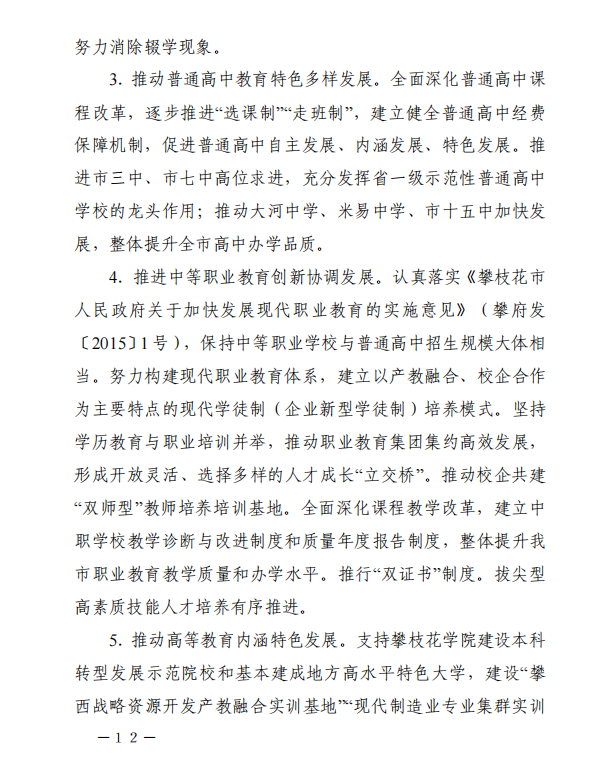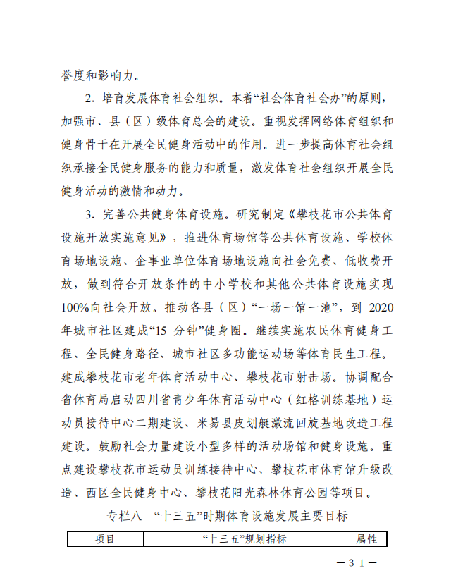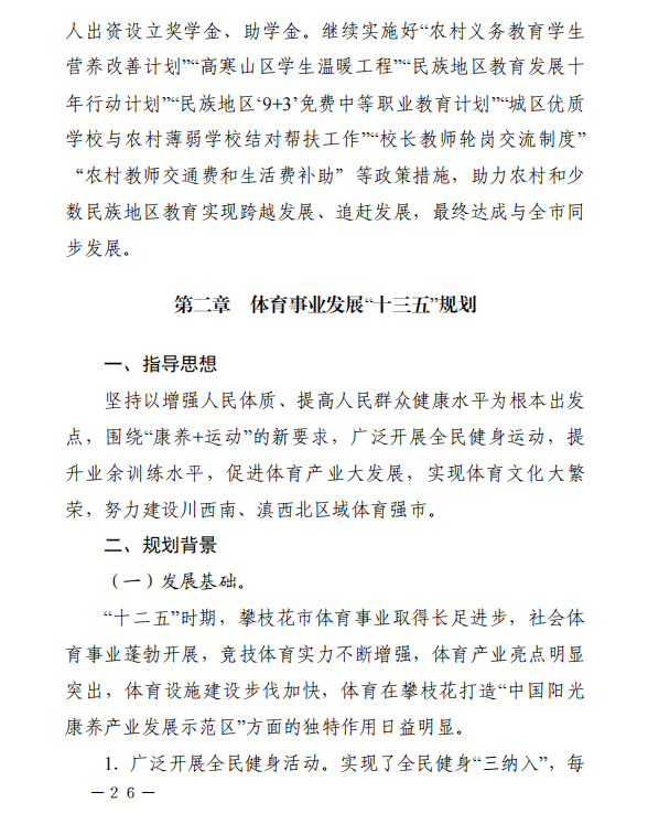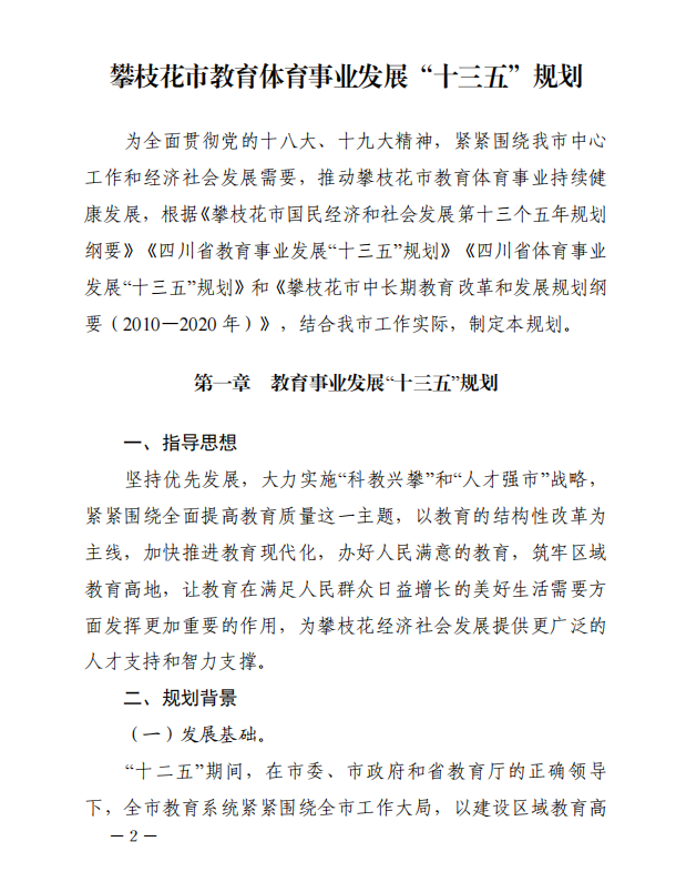 關(guān)于印發(fā)攀枝花市教育體育事業(yè)發(fā)展“十三五”規(guī)劃的通知