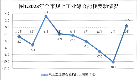 10月,全市規上工業綜合能耗同比增長0.5%,由上月下降10.1%轉為增長。分行業大類看,采礦業綜合能耗同比增長13.2%,由上月下降8.9%轉為增長,上拉全市規上工業總能耗1.9個百分點,影響顯著;制造業綜合能耗同比下降1.5%;電力熱力燃氣及水生產和供應業綜合能耗同比下降14.8%。