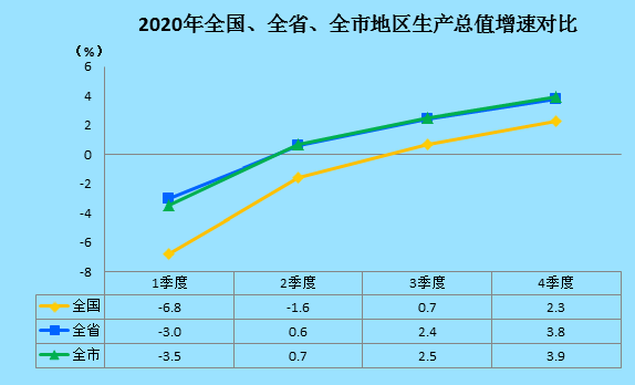 2020年,全市上下堅決貫徹落實市委、市政府的各項決策部署,統(tǒng)籌推進疫情防控和經(jīng)濟社會發(fā)展,以“農(nóng)業(yè)多貢獻、工業(yè)挑大梁、投資唱主角、消費促升級”為工作著力點,“六穩(wěn)”“六保”任務落實成效進一步顯現(xiàn),經(jīng)濟運行實現(xiàn)由降轉增的“V型”反轉,全年主要經(jīng)濟指標“達到省平均、進入二方陣”。