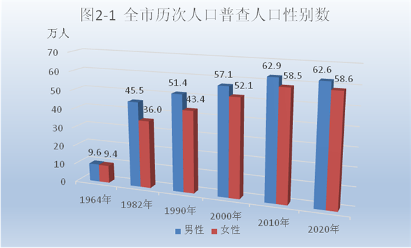 根據第七次全國人口普查結果,現將2020年11月1日零時全市及5個縣(區)人口性別構成情況公布如下:
