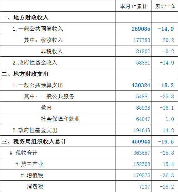 注:在稅務局組織收入總計累計數據中,出口退稅2360萬元,其他收入4474萬元。