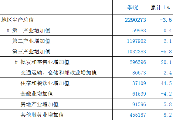 地區(qū)生產(chǎn)總值(2020年1季度)