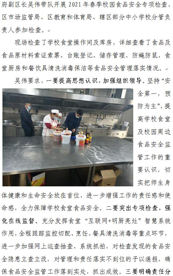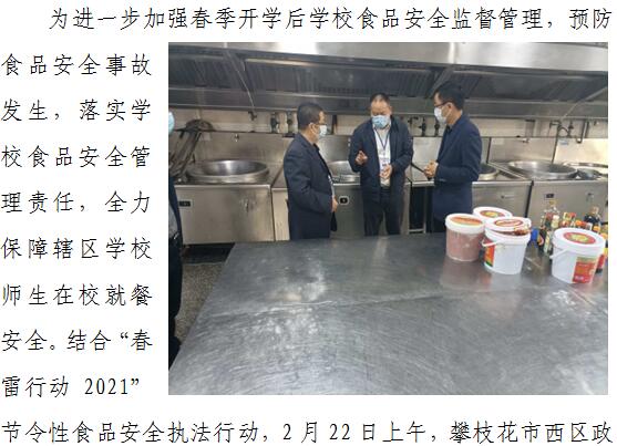攀枝花市西區政府副區長吳偉帶隊開展2021年春季校園食品安全專項檢查
