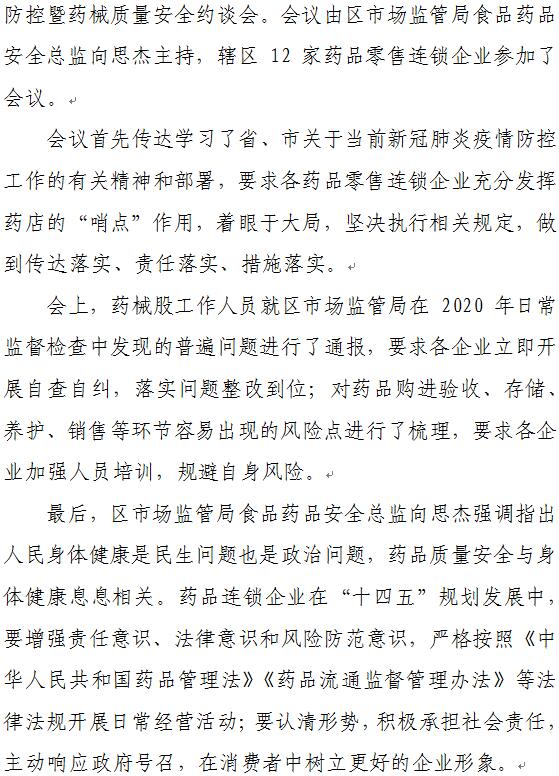 攀枝花市東區市場監管局召開藥品行業疫情防控暨藥械質量安全座談會