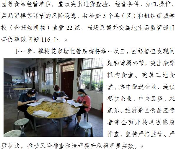 攀枝花市局“兩個行動”暨百日攻堅行動??ㄈ号手ㄊ惺袌霰O管、教育部門聯合督查校園食品安全