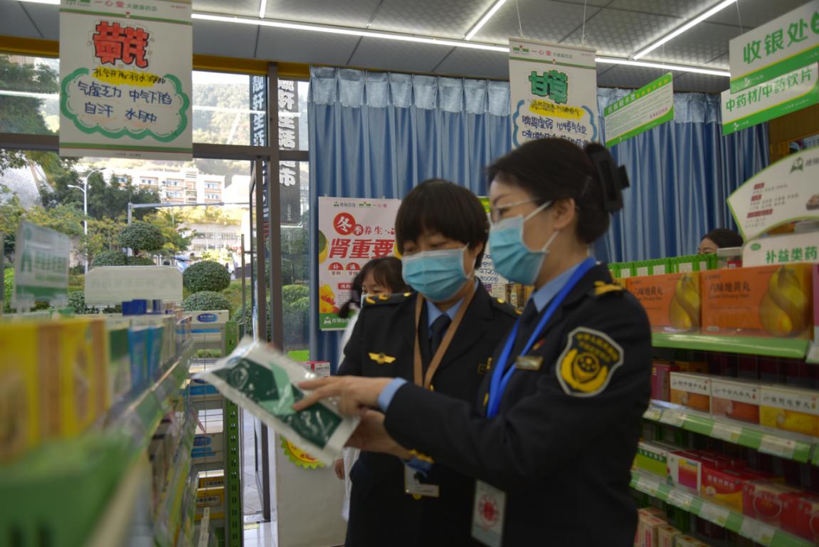 線上啟動儀式結束后,付琳玲副局長帶領執法人員、藥品抽檢人員深入隨機抽取的藥品零售藥店進行督導檢查,詳細了解藥店藥品質量管理情況和執行疫情防控有關情況,對藥店經營藥械質量、購進渠道、人員培訓等內容進行了檢查,并將合理用藥宣傳資料發放藥店工作人員。截至目前,我市藥品安全監管工作取得了顯著成效,圓滿實現藥品安全“零事故”,抽檢藥械化產品297批次,上報藥械化安全性報告3196份,扎實開展藥品安全專項整治、防疫藥械、無菌植入類醫療器械、兒童化妝品等10余項專項整治,排查治理風險點300余個,立案查處藥械化違法案件181件,組織藥械化監管人員及生產經營使用單位人員共1000余人次開展藥械化業務知識培訓,實施“藥店開辦一件事”、“互聯網”+藥學服務、“民生藥事服務站”建設試點工作,努力提高民生服務水平,為公眾提供更快更優民生服務。
