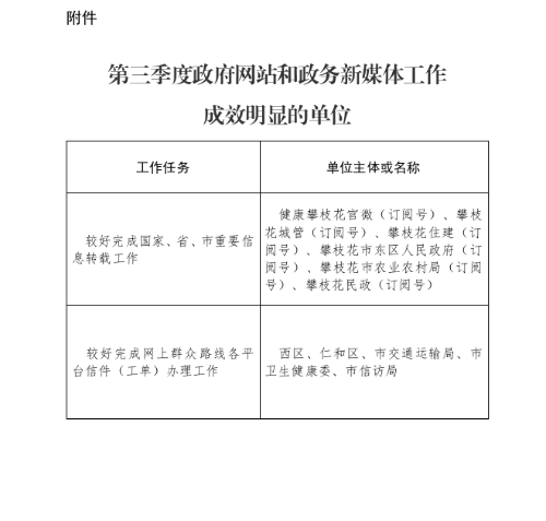 附件:第三季度政府網站和政務新媒體工作成效明顯的單位