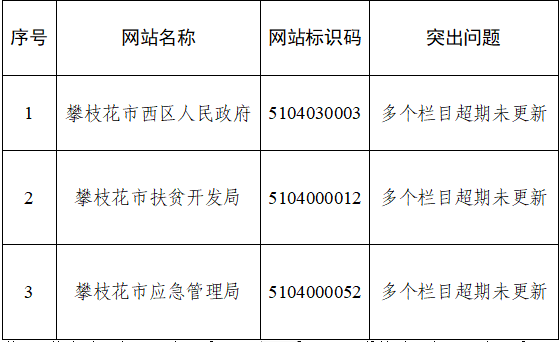 攀枝花市人民政府辦公室關于2020年第三季度全市政府網站檢查和政府系統政務新媒體抽查情況的通報