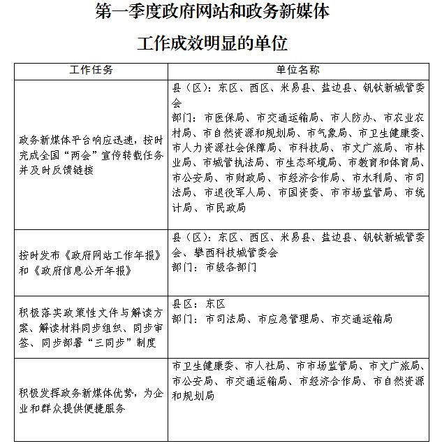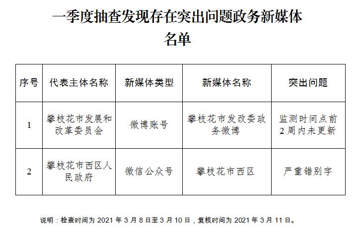 攀枝花市人民政府辦公室關(guān)于2021年第一季度全市政府網(wǎng)站檢查和政府系統(tǒng)政務(wù)新媒體抽查情況的通報(bào)