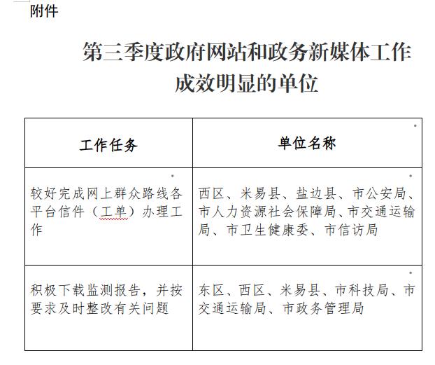 附件:第三季度政府網(wǎng)站和政務(wù)新媒體工作成效明顯的單位