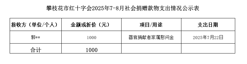 攀枝花市紅十字會2025年7-8月社會捐贈款物支出情況公示