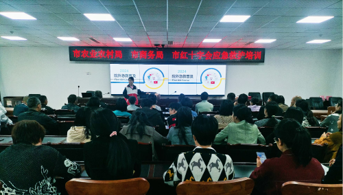 為持續實施好與市直機關工委聯合開展的市直機關職工“十百千萬”應急救護培訓三年行動,2024年11月6日,市紅十字會對市農業農村局、市商務局200余名干部職工開展了應急救護普及培訓。